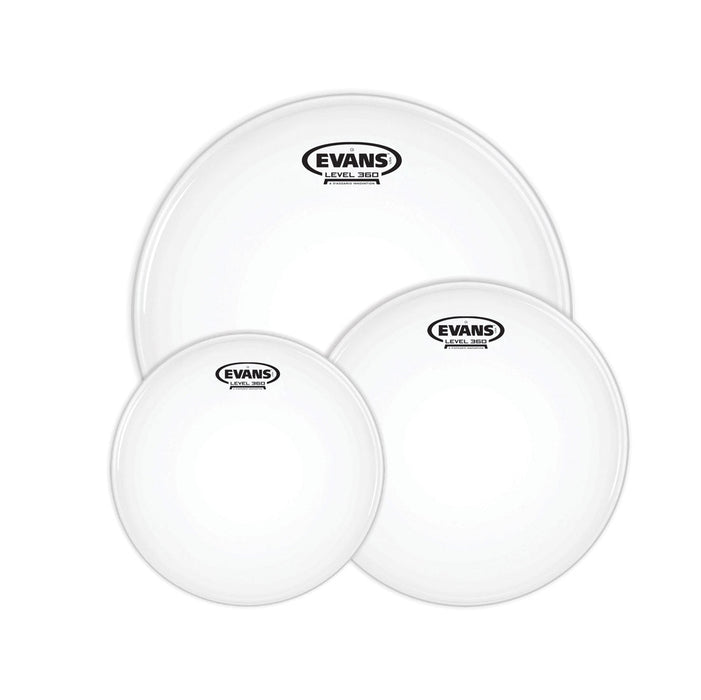 Evans Standard Tom Pack (12", 13", 16") G1 clear single-ply drum heads are designed with a perfect blend of warmth, sustain and articulation while featuring expressiveness and durability. The G1 series features a single ply of 10mil film blending bright tone, sustain, sensitivity, and durability. The G1 head sets the standard for an open and expressive sound. Tuned low, it produces a cavernous rumble that emphasizes the natural sound of the shell. The coated version delivers additional warmth, focus, and depth. Evans Level 360 technology is incorporated to extend the level playing surface of the drumhead, 360 degrees around the drum. The vertically enhanced collar design guarantees even contact with the critical bearing edge of the drum shell, resulting in: ease of tuning, extended pitch range and optimum quality of sound. Evans Level 360 technology resolves the age-old dilemma of traditional synthetic heads consistently not fitting the drum shell without using considerable force.