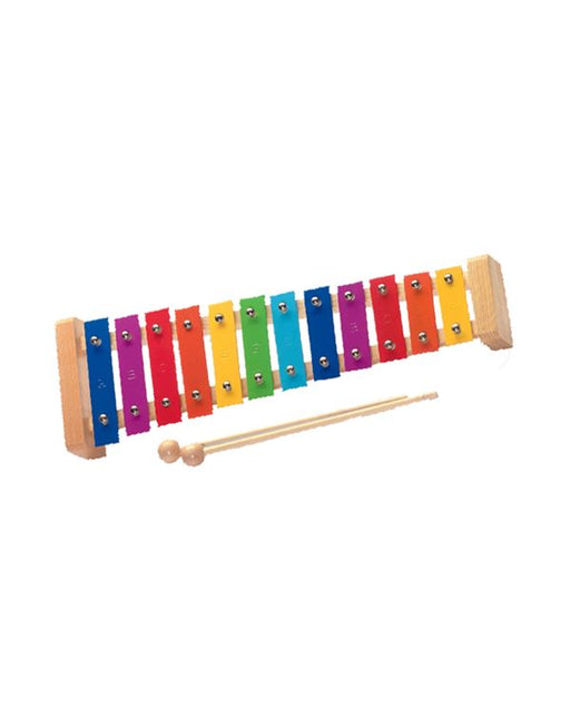 StaggMaterial: pine (rack) Notes: 1 1/2 octave (A to E) Included: two Wooden mallets Rainbow metal Keys Similar to Glockenspiel or Xylophone