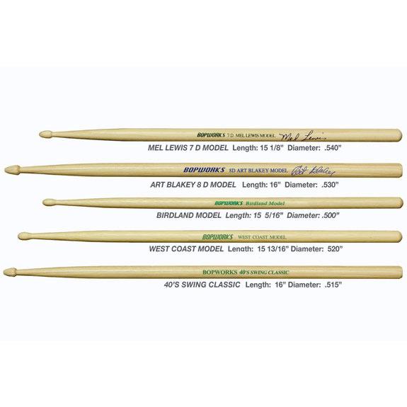 Las baquetas Swing Classic de Bopworks 40, también conocidas como baquetas Gene Krupa, son una duplicación exacta de las baquetas modelo de los años cuarenta de Gene, hasta la punta triangular única.