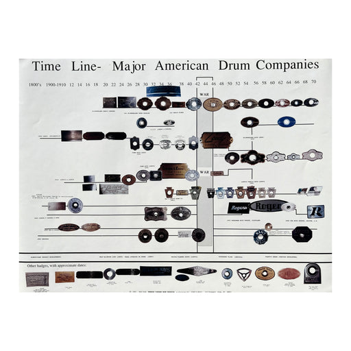 Drum Supply85 個のフルカラー ドラム バッジが、使用された日付に合わせて並べられた、素敵な 18 x 24 ポスターです。eBay や質屋で見つけたビンテージ品の日付を調べるのにとても便利です。額装に最適です。