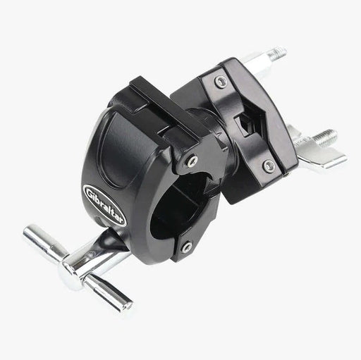 Gibraltarドラム、シンバル、アクセサリ アームを任意のラック バーに接続できるドラム ラック マルチ クランプ。 中央部分が回転して傾きを微調整します。目立たないドラムキーロックが付いています。