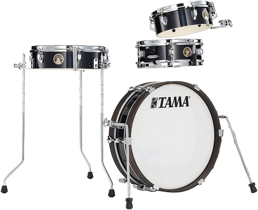 TamaTama の Club-JAM Pancake キット用のタム アドオン パック。3.5"x10" タムと 3.5"x13" フロア タム (脚付き) が含まれています。 含まれるもの: 10x3.5 バスドラム 13x3.5 トム 4x12 スネア(オプション) 注意: これはシ...