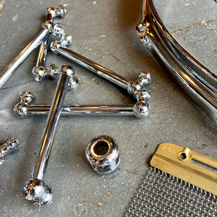 含まれるもの: ベアリング エッジ、スネア ベッド、付属のパーツをすべてドリルで穴あけできる (またはドリル済みを選択) シェルを備えた 6.5 x 14 銅製シェル。プロ ブランドのトップ/ボトム ヘッド。2.3 クローム トリプル フランジ フープ。ストレーナーとバット プレート。クローム オーバー ブラス チューブ ラグ。14 インチ スネア ワイヤー。テンション ロッド。