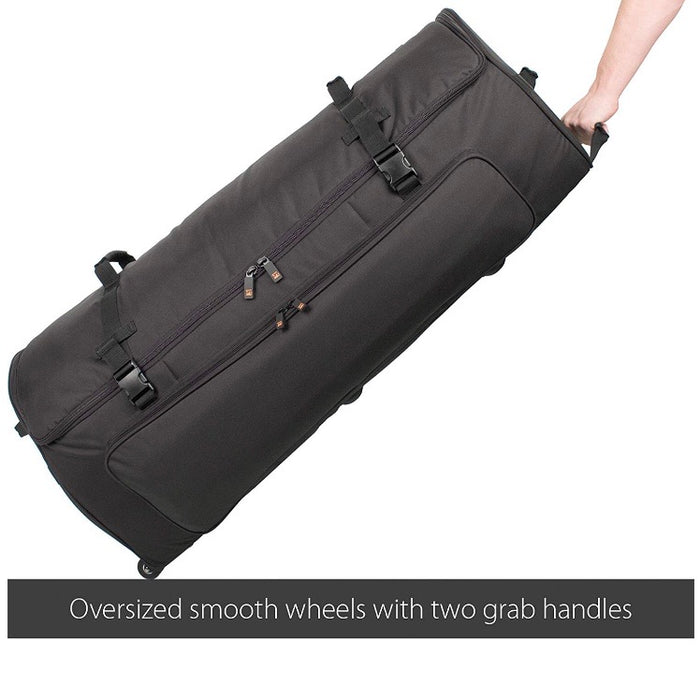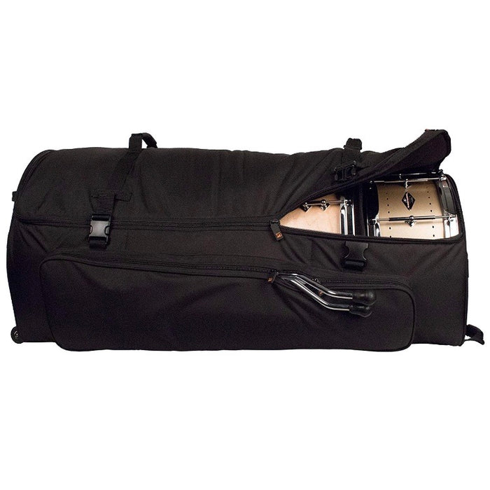 また、このマスターバッグの中に14インチのドラムバッグを2つ入れて、5~6個の14インチのスネアドラムを運ぶのにも成功しました。