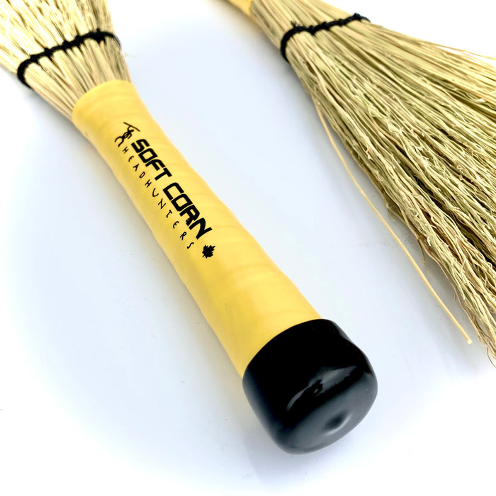 The Headhunters Fat Bastards are small diameter broom sorghum corn bundled inot a broad sweep at the end of the brush head. Soft attack, great for low volume settings, but producing a huge fat back beat. These are a favourite of many Headhunters’ Artists.