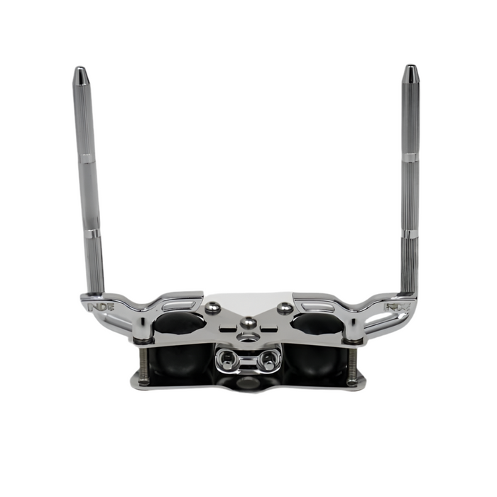 The INDe Double Ball Joint Tom Holder is ultra lightweight and extremely easy to adjust. Use this Double Ball Joint Tom Holder to upgrade your current tom holder! L-arms are 10.5mm in diameter.