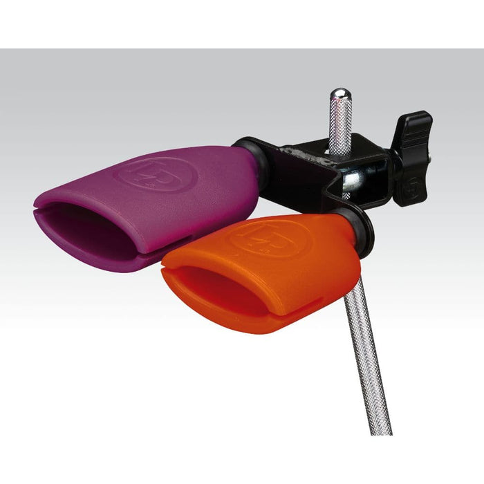 The LP Double Sambago Bell is a mountable version of the Agogo Bell, with the bells pitched approximately one minor third apart. Made from LP's indestructible Jenigor material, these bells include a heavy duty mounting bracket that fits 3/8" diameter rods.
