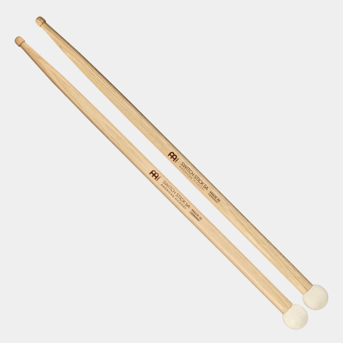 The Switch Stick 5A features our popular Hybrid 5A sticks (made from American hickory) with a hard felt mallet added to the butt end. This is a great combination for players that need to make quick changes from sticks to mallets or mallets to sticks during a performance.