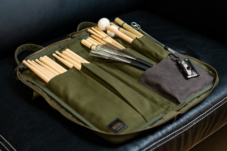 These high-quality bags come with five pockets to hold a large number of drumsticks, brushes, rods and mallets, plus three different sized accessory pockets to accommodate smaller parts or sound effects. Plus, it comes equipped with length adjustable floor tom hooks and straps to suspend it in an open position.