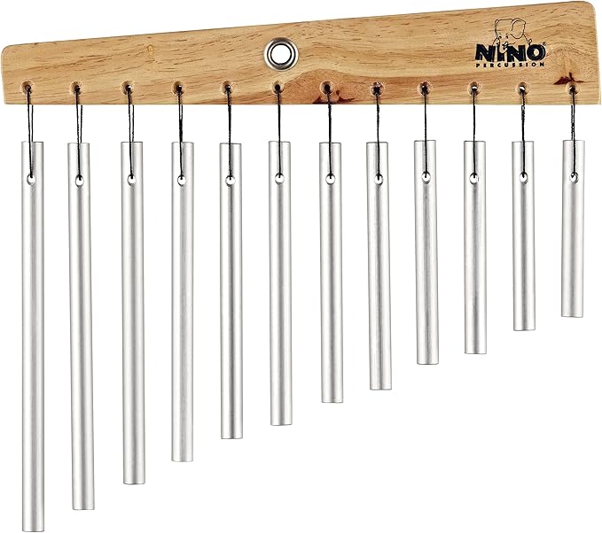 The NINO Chimes can be mounted on a cymbal stand, or held by the wooden frame. The 12 bars of the NINO Chimes are made from a premium aluminum alloy and create a very full and rich sound.