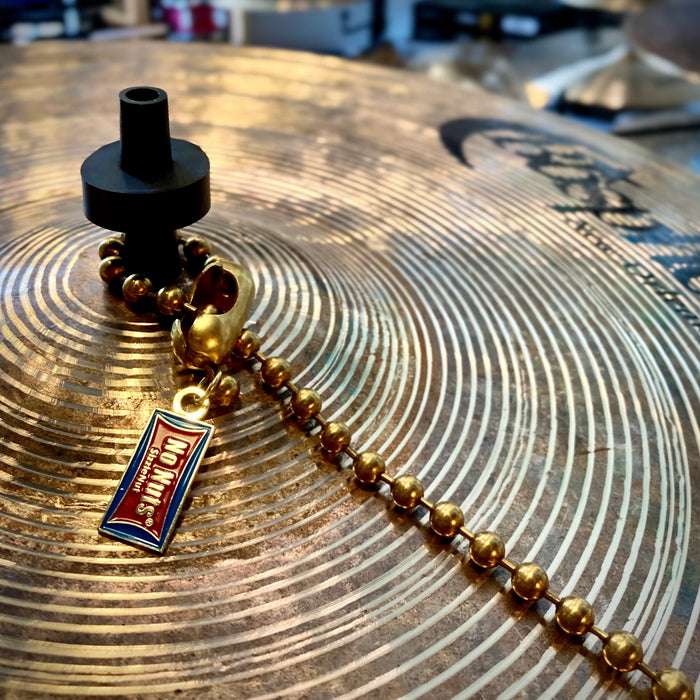 The SizzleNut is simply placed into the hole at the end of the No Nuts Cymbal Sleeve and let go! We have sized the SizzleNut to drape over the largest of rides. Any drummer can have a convincing and moody rivet sound in seconds. If you're a drummer who's looking to spice up their cymbals, or who wants to get an authentic jazz riveted sound without drilling, try The SizzleNut.