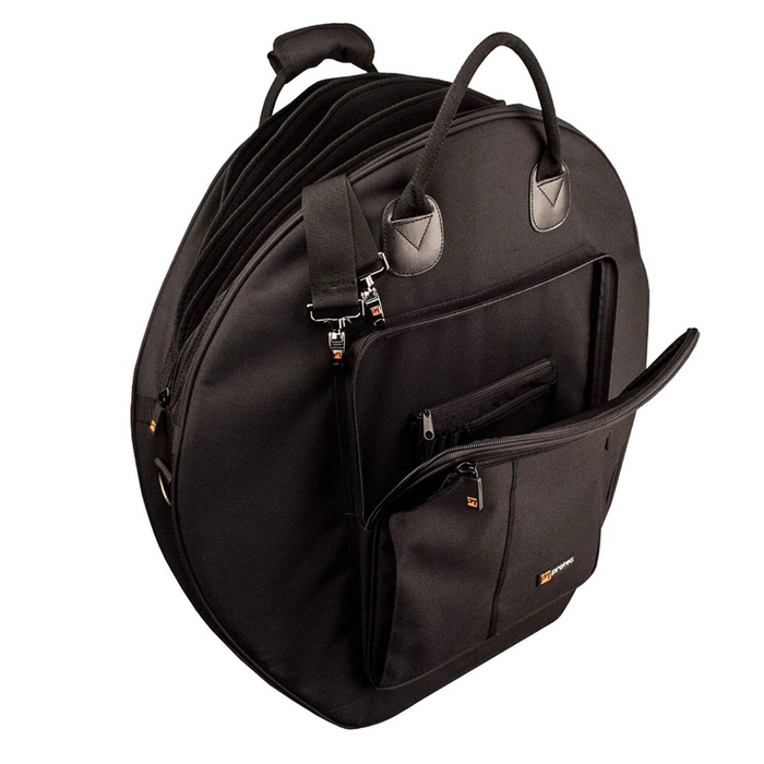 Protec's C232 deluxe gig bag protects 6 cymbals up to 24" and features 5 padded dividers, large exterior pocket with built-in organizer, rugged 600D nylon exterior with high-density 10mm padding, soft padded nylex lining, strong metal hardware, padded carry handle, removable padded shoulder strap, and reinforced puncture resistant bottom.