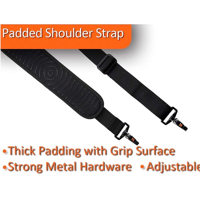 - Rugged 600D nylon exterior featuring high-density 10mm padding and a padded handle wrap